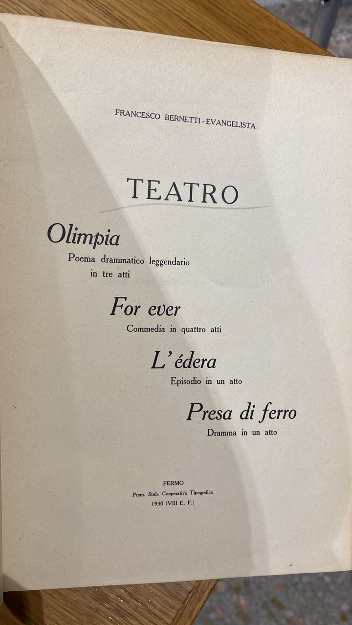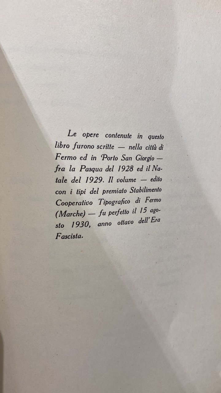 Il libro presenta una dedica da parte dell'autore stesso. Prima edizione del volume (1930), edito da FRANCESCO BERNETTI-EVANGELISTA. Copertina rigida in tela grezza , con titoli in oro sul dorso. Leggerissimo ingiallimento della carta.