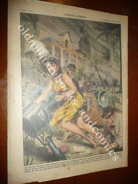 DESCRIZIONE: LA DOMENICA DEL CORRIERE 2 settembre 1951 n. 35 In copertina: Margaret maggiorennne, i reali d'Inghilterra danno una festa. Al retro: Mentre girava un film l'attrice Linda Darnell è travolta da un urugano CONDIZIONI DELL'OGGETTO: Accettabili/Discrete, con sovracc. azzurrina, con evidenti pieghe e strappi. PESO/WEIGHT: 78 g without package