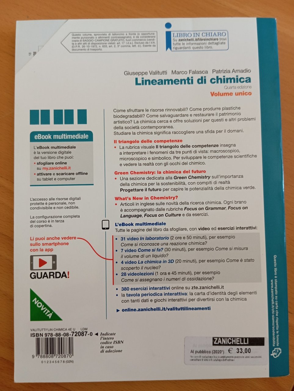 Lineamenti di chimica, Volume unico, Valiutti Falasca Amadio, Zanichelli, 2019