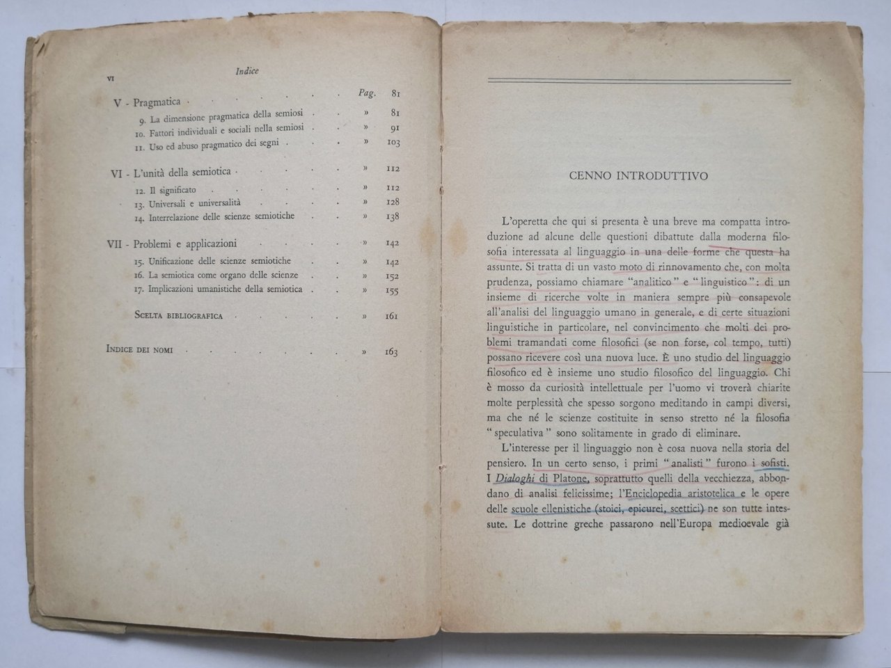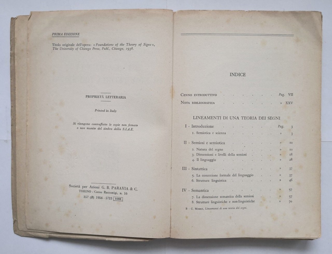 LINEAMENTI DI UNA TEORIA DEI SEGNI di Charles Morris 1954 Paravia Libro filosofi