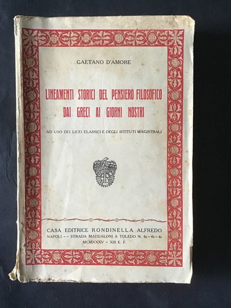 LINEAMENTI STORICI DEL PENSIERO FILOSOFICO DAI GRECI AI GIORNI NOSTRI
