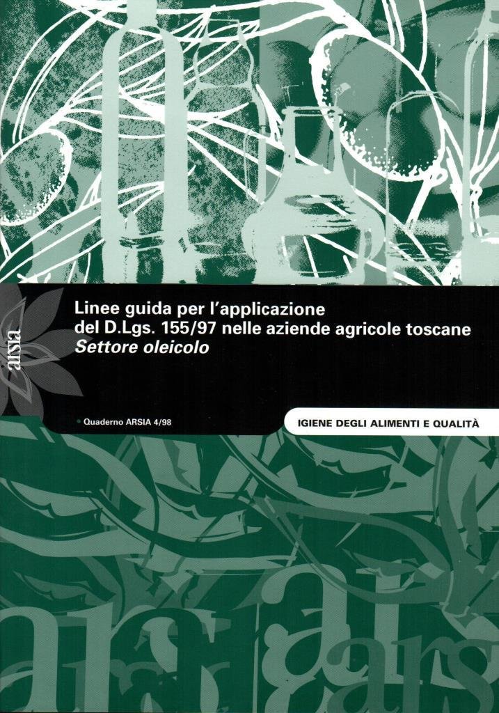 "Linee guida per l'applicazione del D.Lgs 155/97 nelle aziende agricole toscane. Settore oleicolo", edizione ottobre 1998, pp. 23, formato 21 x 30.