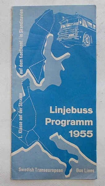 Linjebuss Programm 1955. Swedish Transeuropean Bus Lines.