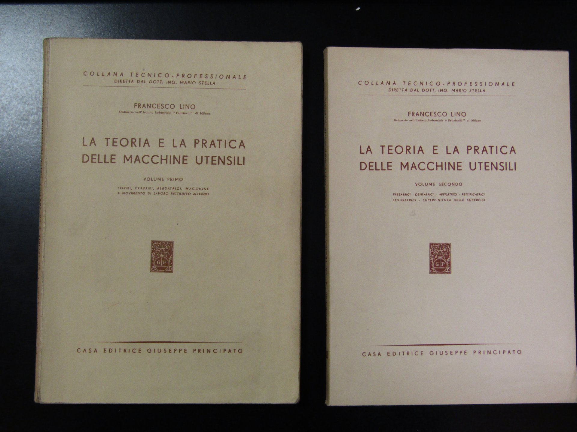 Lino Francesco. La teoria e la pratica delle macchine utensili. Casa Editrice Giuseppe Principato 1953. In-8. pp. 260 + 223.