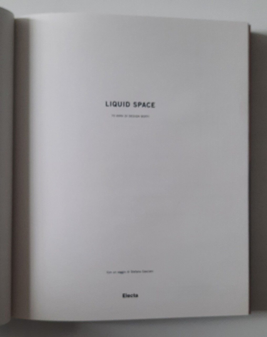 LIQUID SPACE 70 ANNI DI DESIGN BOFFI ELECTA 2005In 4°, legatura editoriale, copertina illustrata, custodia in plexiglass, ill. in a colori e in b/n.Rottura alla custodia, volume in ottime condizioni.