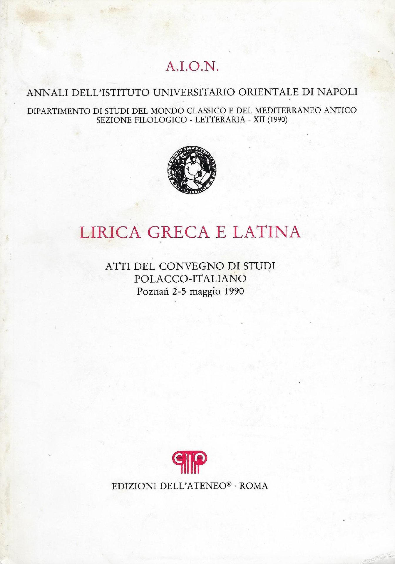 Lirica Greca e Latina, Atti del convegno di studi polacco-italiano, Poznan 2-5 maggio 1990