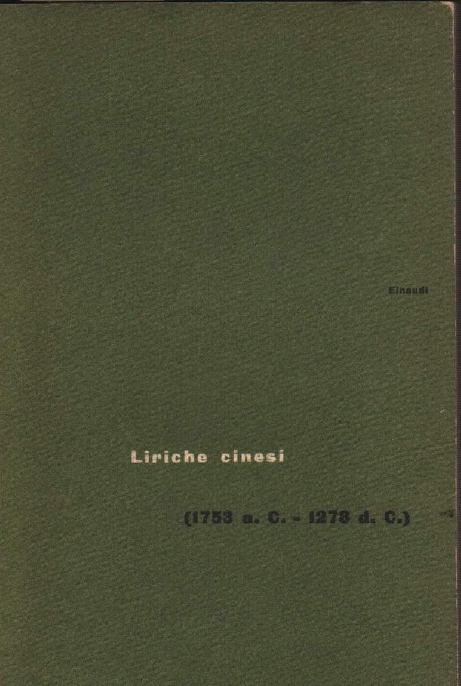 In 16, leg. in m. tela edit., pp. 249. Dedica a penna in antiporta. Pagine ingiallite ai tagli. Discrete condizioni. Prefazione di Eugenio Montale.Luogo di pubblicazione TorinoEditore EinaudiAnno pubblicazione 1953Materia/Argomento Letteratura cinese, Poesia ***Due to bureaucratic reasons, books dated over 70 years old cannot be immediately exported, please contact us before placing the order.***