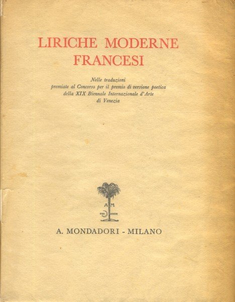 .Nelle traduzioni premiate al Concorso per il premio di versione poetica della XIX Biennale Internazionale d'arte di Venezia - in 8° - pp.323 - Brossura editoriale - Velina editoriale. BUONO stato, strappo in costola alla velina