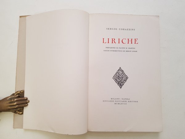 Prefazione di Fausto M. Martini; Saggio introduttivo di Sergio Solmi.<BR>In 8°; pp. 135; brossura editoriale; cucito.<BR>CONDIZIONI BUONE: appunto a penna alla sguardia.