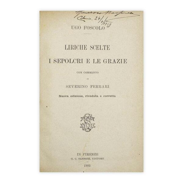 G.C. Sansoni Editore - Firenze 1903 Dimensioni: 13,5 x 19,5 cm c.a. Peso: 0,227 kg ,Pagine: 154 Cartonato, buone condizioni