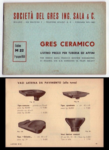 Listino prezzi per tuberia ed affini GRES CERAMICO. Società del Gres Ing. Sala & C. Milano.1956