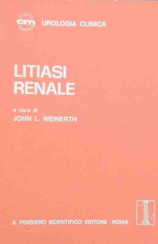 Litiasi renale, a cura di John L. Weinerth, edizione italiana a cura di Marcello Marchi, Il Pensiero Scientifico Editore, Roma 1982, prima ed. italiana, 197, ill. b.n., cm 21, br. ed. Collana Clinica Moderna. Serie Urologia Clinica, vol. VII, n. 3, dicembre 1982. Titolo originale: The urologic clinics of North America. Symposium on advances in renal lithiasis. Leggere tracce d’uso alla brossura con minime abrasioni al dorso, alcune carte con lievi sottolineature a biro, per il resto ben conservato.