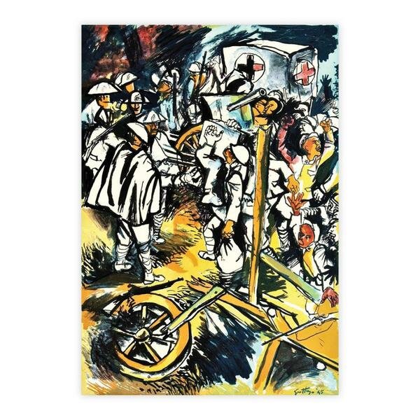 Renato Guttuso (1911 - 1987) Litografia originale a colori firmata e numerata a matita dall'artista 200 / 250L'opera fa parte della serie "Addio alle armi, omaggio a Hemingway" realizzata nel 1976Dimensioni esterne cm 67 x 46,5 Dimensioni disegno 50 x 35Perfette condizioni generali - Certificato di autenticità allegato (C.O.A.)Referenza Gutt1 Renato Guttuso (1911 - 1987)Originalfarblithographie vom Künstler 200/250 mit Bleistift signiert und nummeriertDie Arbeit ist Teil der 1976 entstandenen Serie "Ein Abschied von Waffen, eine Hommage an Hemingway"Außenmaße 67 x 46,5 cm Zeichnungsmaße 50 x 35Perfekte allgemeine Bedingungen - Echtheitszertifikat beigefügt (C.O.A.)Referenz Gutt1 Renato Guttuso (1911-1987)Lithographie originale en couleurs signée et numérotée au crayon par l'artiste 200/250L'œuvre fait partie de la série "Un adieu aux armes, hommage à Hemingway" réalisée en 1976Dimensions extérieures 67 x 46,5 cm Dimensions du dessin 50 x 35Conditions générales parfaites - Certificat d'authenticité joint (C.O.A.)Référence Gutt1 Renato Guttuso (1911 - 1987)Original color lithograph signed and numbered in pencil by the artist 200/250The work is part of the series "A farewell to arms, homage to Hemingway" made in 1976External dimensions 67 x 46.5 cm Drawing dimensions 50 x 35Perfect general conditions - Certificate of authenticity attached (C.O.A.)Reference Gutt1