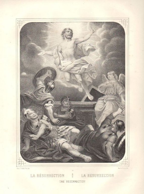 Litografia raffigurante il Cristo che siinnalza dal sepolcro.