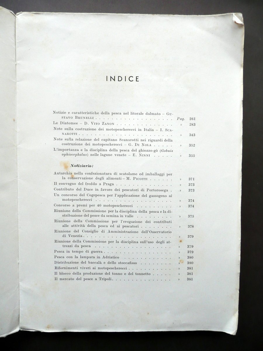 Litorale Dalmato Chiozzo-go Motopescherecci Bollettino di Pesca Roma 1941