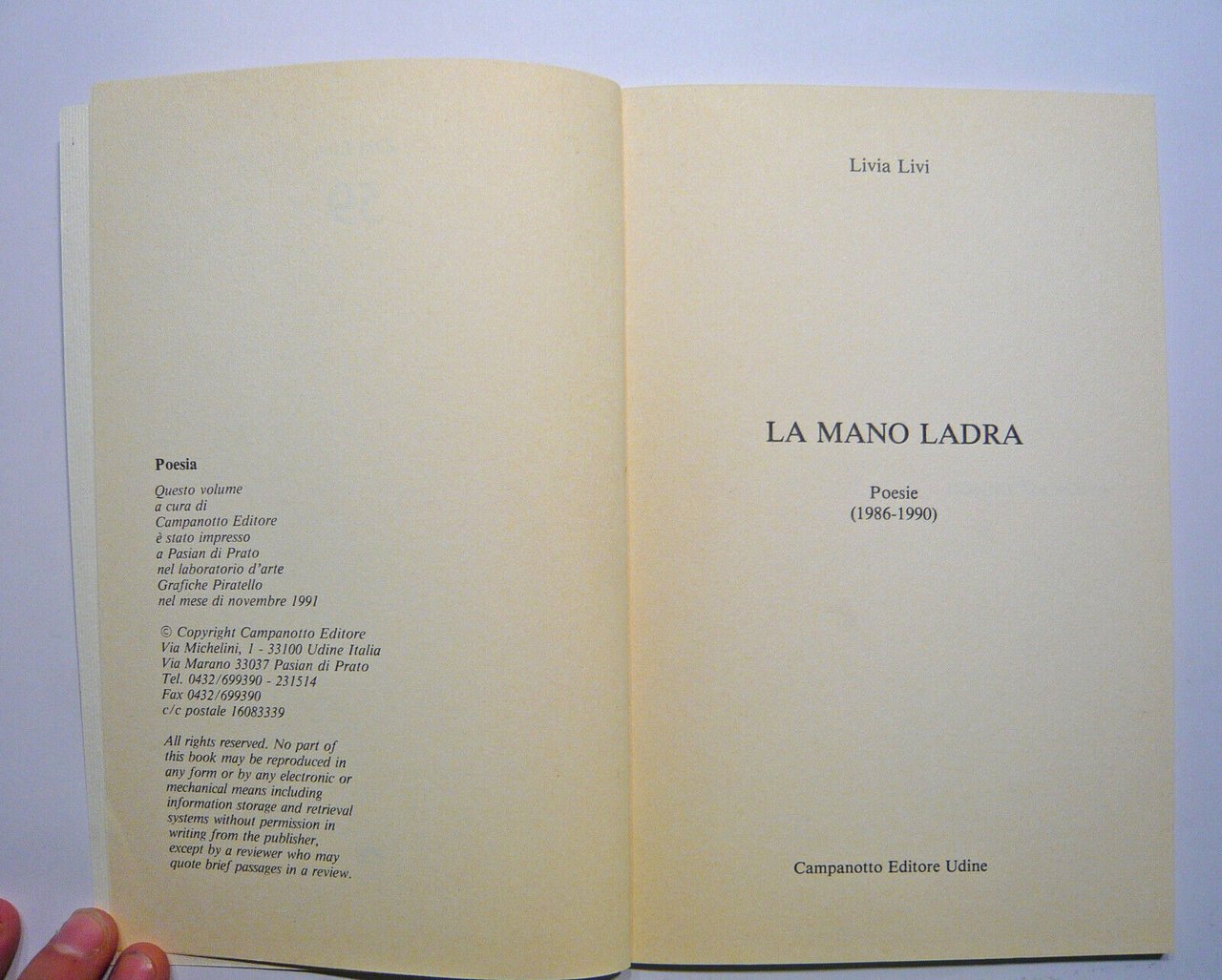 Livia Livi,LA MANO LADRA.POESIE(1986-1990),Campanotto 1991[autografo