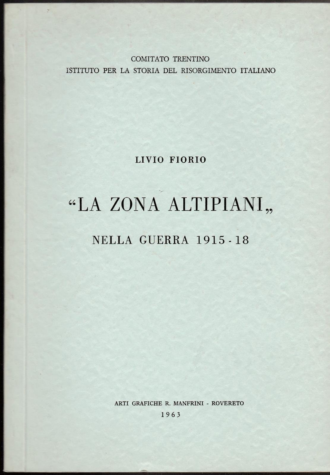 COMITATO TRENTINO ISTITUTO PER LA STORIA DEL RISORGIMENTO ITALIANO LIVIO FIORIOLA ZONA ALTIPIANI NELLA GUERRA 1915-18ARTI GRAFICHE ROVERETO 196313 L4352 copertina morbida editoriale con lievi aloni, in ottimo stato n. pag. 37 cm. 24,5 x 17