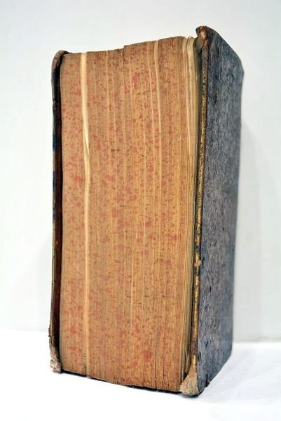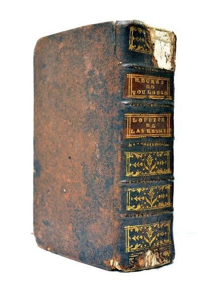 in-12. 8 feuillets. 732 pages (i.e. 734). CLXX. (17x10cm). Plein veau de l'époque. Dos à nerfs. Pièces de titre. Tranches mouchetées. Usures aux coins. Charnière du plat supérieur fendue. Charnière du plat inférieur fendue aux extrémités. Accidents au dos avec manques de cuir. Quelques rousseurs et taches. En plus des prières et oraisons pour les grandes fêtes de l'année liturgique, prières pour Saint Etienne; pour Saint Exupere, évêque de Toulouse; pour Saint Saturnin, martyr, apôtre et premier évêque de Toulouse; pour Saint Louis, Roi de France et saint Augustin, évêque d'Hippone, Saint Martin de Tours, etc. In-fine, extrait des rubriques concernant le commun des Saints de la partie du soir. Exemplaire solide.