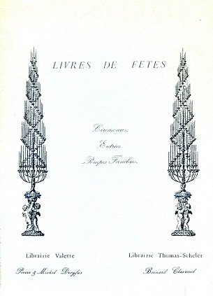 Livres de Fetes. Cérémonies. Entrées. Pompes Funèbres. Librairie Valette. 11, rue de Vaugirard - 75006 Paris - Librairie Thomas Scheler. 19 rue de Tournon - 75006 Paris