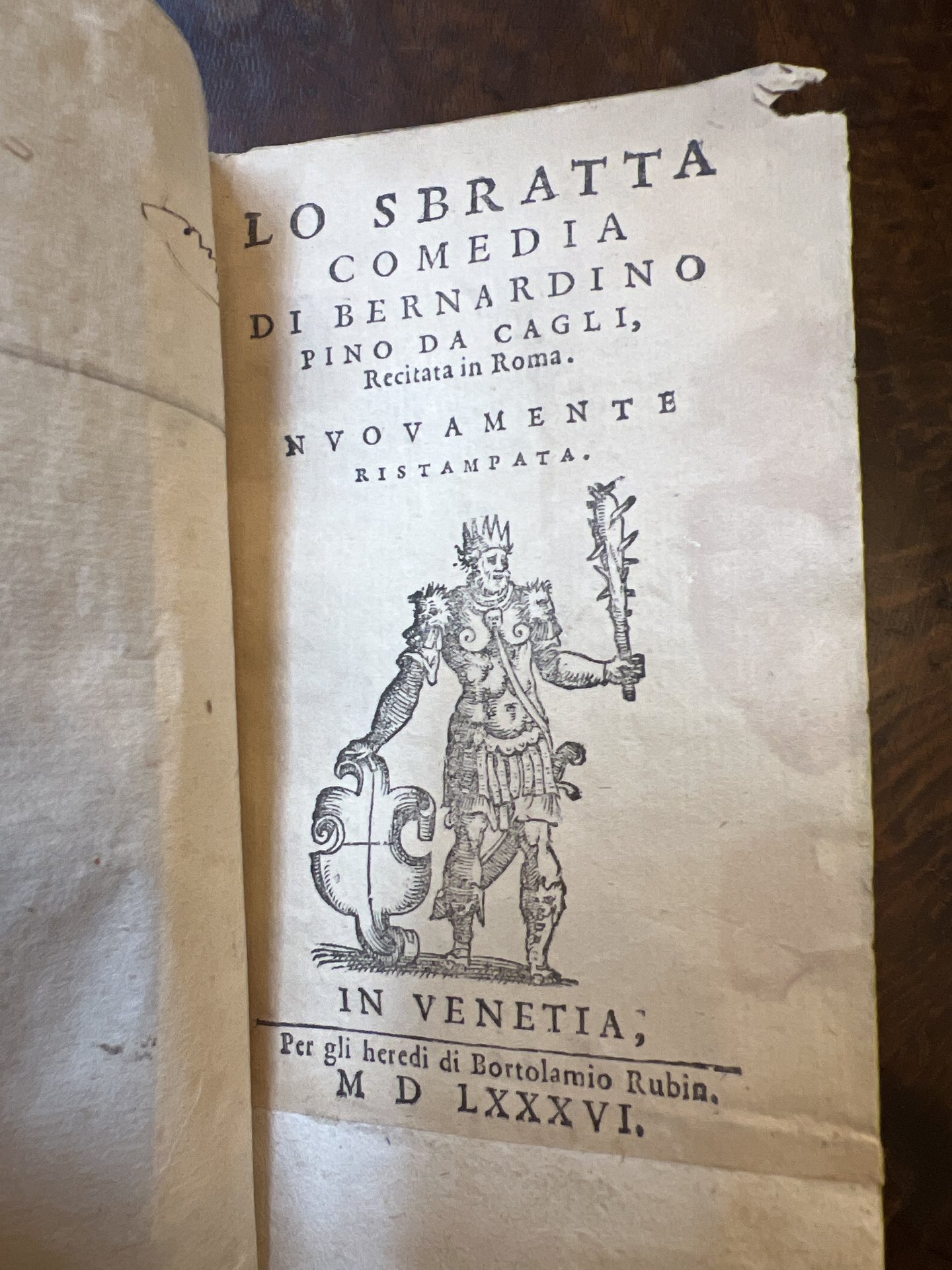 Lo Sbratta comedia di Bernardino Pino da Cagli, recitata in Roma. Nuovamente ristampata