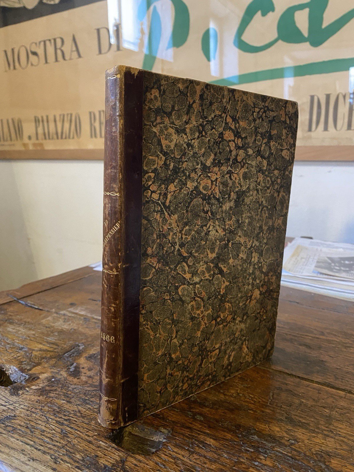 I primi venti numeri pubblicati dal 3 gennaio al 16 maggio 1866 di questo settimanale satirico rilegati in un unico volume In 4° legatura coeva 1/2 pelle pp. 320 Illustrazioni in bianco nero Ottimo stato