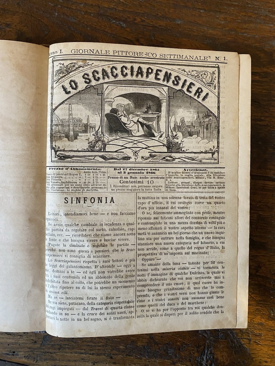 Lo scacciapensieri Giornale pittorico settimanale Anno I N. 1 /N. 20 Milano 1866