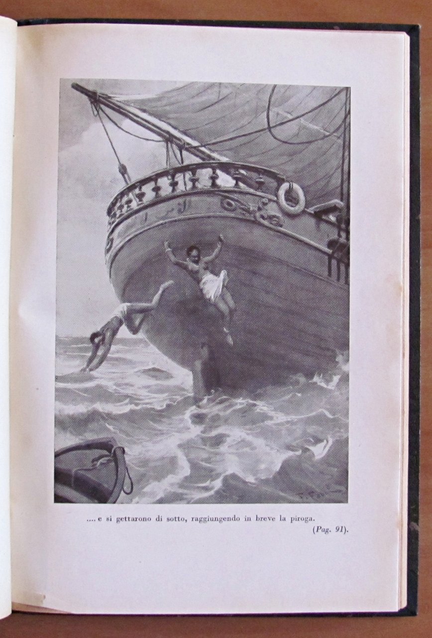 Romanzo postumo tratto da trama lasciata dall'Autore e pubblicato sotto la direzione di Nadir Salgari. Tavole monocromatiche f.t. di F. Fabbi. Editore Bemporad - Firenze, 1929. Rilegatura coeva in mezza tela con titoli in oro al dorso in tela. Copertina originale conservata all'interno. 17x25; pp.193. Ottimo stato. , Ottimo (Fine)