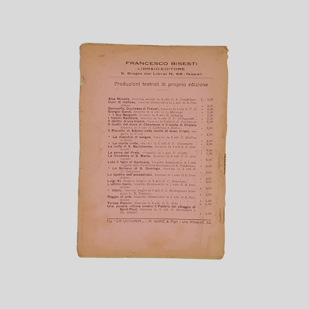 in-16 (cm 19,5), pp. 43. Esemplare sciupato, intonso.