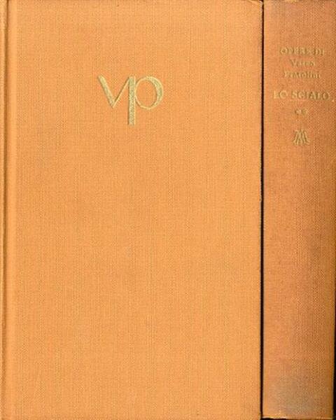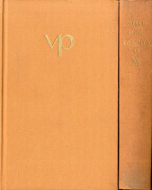 2 v. (1343 p. compless.) ; 20 X 12 cm. Narratori italiani, 74 */** ; Opere di V. Pratolini, 3. Nella Firenze del primo dopoguerra, mentre il fascismo acquista sempre più potere, si intrecciano le vicende di due famiglie piccolo borghesi nevrotiche e problematiche. Dal ras fascista pieno di dubbi al dramma di Ninì, donna condannata a rifiutare la propria omosessualità, dalla buona Nella che si trasforma in una Bovary fiorentina al contadino socialista che diventa un eroe suo malgrado: "Lo scialo" è un grande affresco sull'Italia di allora, sull'evoluzione, e involuzione, della piccola e media borghesia, che perde lentamente la sua centralità nella Storia e nelle proprie certezze morali, in un disfacimento di sottomissione all'ideologia fascista. Tra cronaca e memorie autobiografiche, le peripezie impreviste e i colpi di scena indimenticabili di questa seconda opera della trilogia "Una storia italiana", iniziata con "Metello", ci accompagnano attraverso un romanzo-mondo ricco di personaggi tratteggiati con un realismo e una profondità psicologica mirabile. Legatura editoriale, coperta in cartone rigido telato di colore marrone, titolo impresso in oro al dorso, al piatto impresse in oro le iniziali dell'autore "VP". Mancano le sovraccoperte originali. Segni del tempo ai risvolti della coperta e al taglio (fioriture e ingiallimento della carta), per il resto volumi integri. Codice libreria 6620.