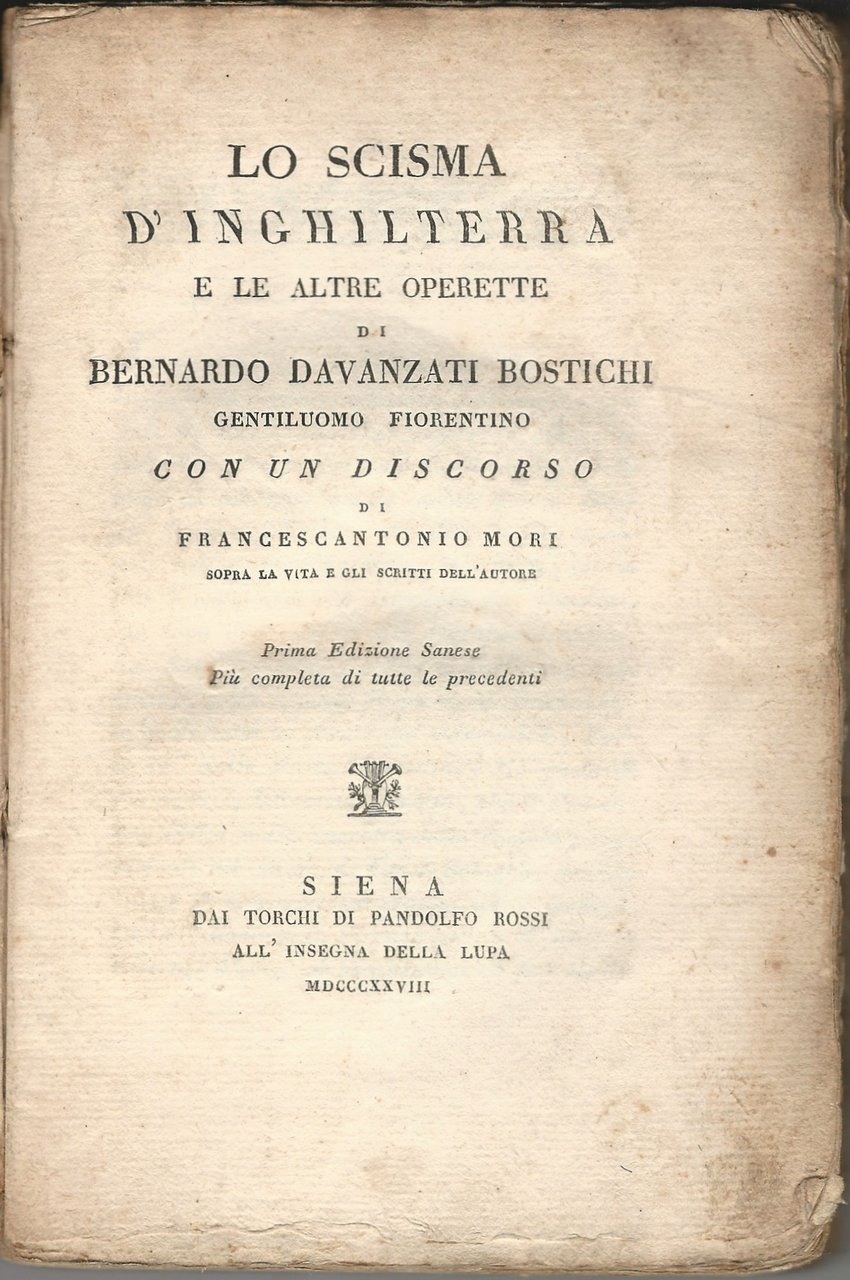In 16, p. XVI - 246 [2], br. orig. in mediocri condizioni.