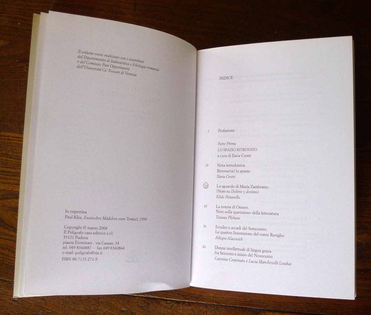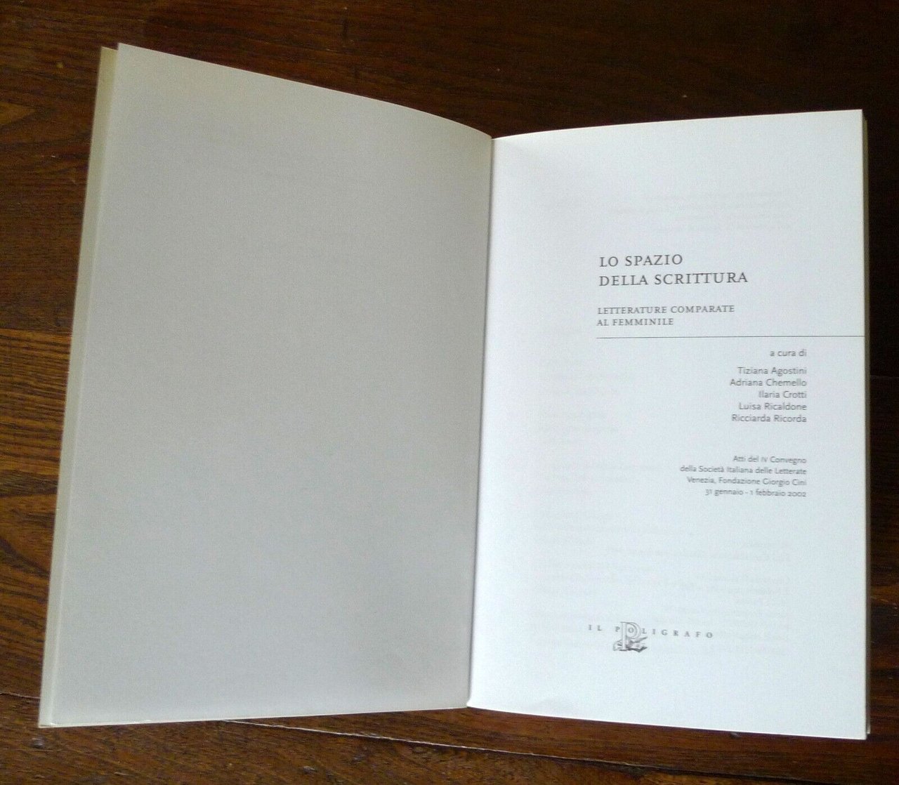 LO SPAZIO DELLA SCRITTURA.LETTERATURE COMPARATE AL FEMMINILE.A cura di Tiziana Agostini, Adriana Chemello, Ilaria Crotti, Luisa Ricaldone, Ricciarda Ricorda.[Atti del IV Convegno della Società Italiana delle Letterate, Venezia, Fondazione Giorgio Cini, 31 gennaio - 1° febbraio 2002.Il Poligrafo Casa editrice, Padova 2004,brossura, 21x14 cm., pp.580,SOGGETTI RIVELATI. Ritratti, storie, scritture di donne.collana di studi coordinata da Saveria Chemotti,ISBN: 978-88-7115-271-4,peso: g.850