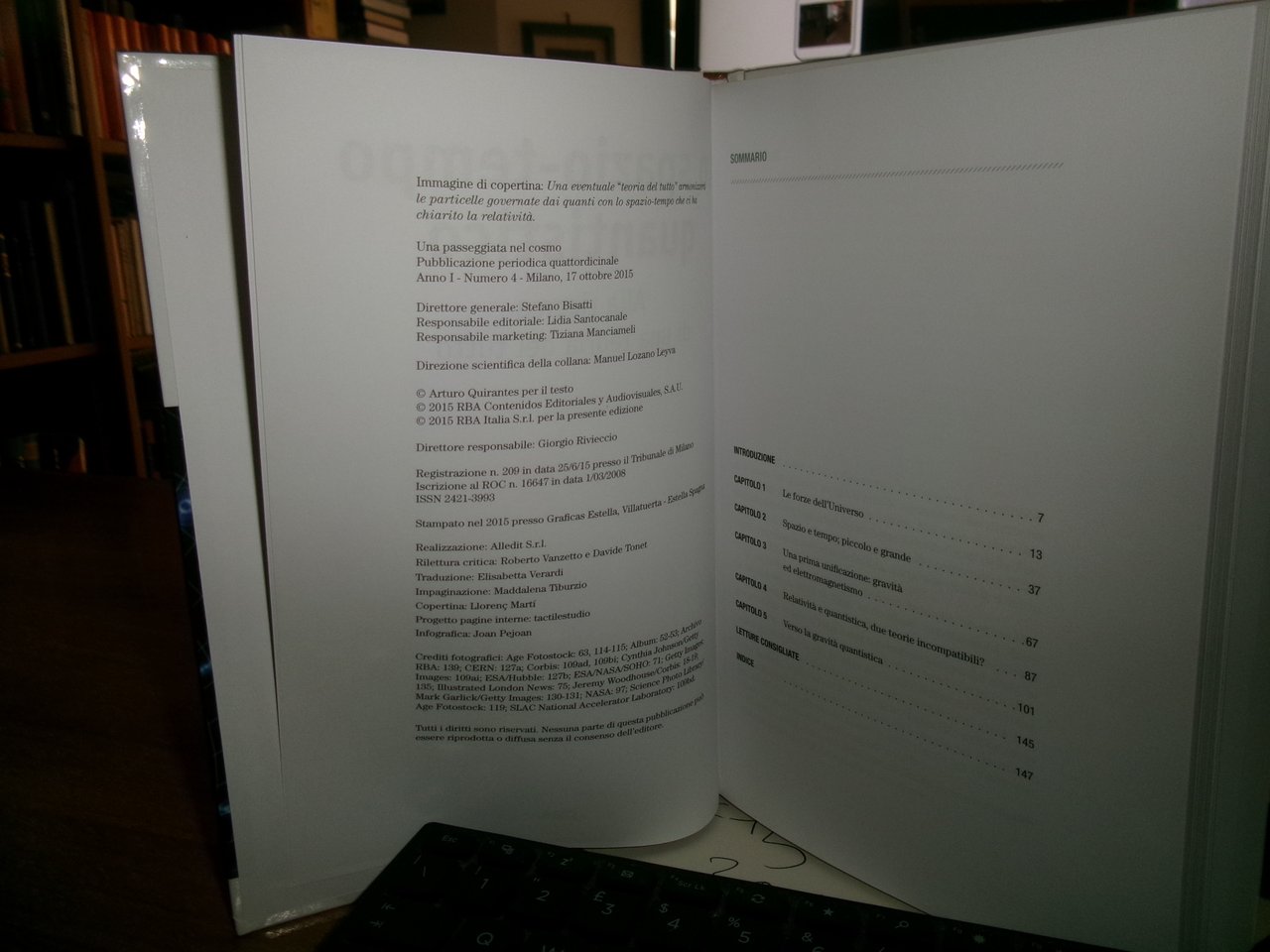 Lo Spazio-Tempo quantistico. Alla ricerca di una teoria del tutto. Milano, COSMO RBA 2015. In-8°, cartonato edit. ill. a col. 151 pp. con illustrazioni a col. n.t. In stato di nuovo. Uff. C - I - 7