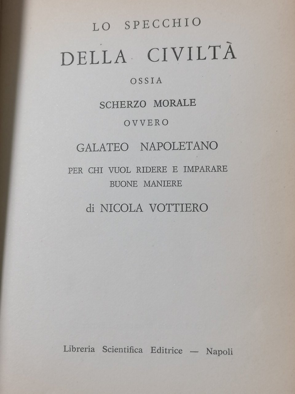 Lo Specchio Della Cevertà Ovvero Galateo Napoletano Scherzo Morale Vottiero 1968