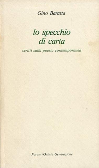 185 p. ; 21 x 12 cm. Quinta generazione. Saggistica. Gino Baratta originario della provincia di Mantova, nel 1964, contribuì alla fondazione della rivista «Il Portico», che si rivelò un importante strumento di cultura entrando a far parte di quella fioritura di periodici specializzati caratterizzanti il panorama culturale italiano fra la seconda metà degli anni cinquanta e la prima metà degli anni sessanta; la rivista, rivolta in modo particolare all'analisi della letteratura, dell'arte e della filosofia del novecento, riportava innovativi contributi di natura critica. Dopo una serie di saggi, fra cui spicca quello del 1966, Il manierismo: una categoria discussa, Baratta pubblicò nel 1967 il suo primo volume, "Pretesti critici: Ricerche sulla letteratura contemporanea". L'esperienza del 'gruppo culturale' ebbe per il critico mantovano un seguito nel 1972, con la fondazione, insieme ad altri, de “Il Circolo Ottobre” di rivoluzionaria memoria e con specifici intenti di rinnovamento intellettuale. Fra il 1975 e il 1984 Baratta diede alle stampe diversi fra i suoi scritti più famosi, Immaginario e letteratura, (1975), pubblicò Avanguardia letteraria sull'Enciclopedia Feltrinelli-Fischer, (1976), E' ancora possibile una storia della letteratura?, (1978); il suo più ampio inserto sul fantastico in Letteratura Arte - Miti del '900 (1979), Teatro del gruppo 63, sull'Enciclopedia del teatro del '900, (Feltrinelli, 1980) e Realtà e illusioni del soggetto, nel 1982. Con Francesco Bartoli, Alberto Bernardelli e Frediano Sessi, Baratta diede vita nel 1983 a una collana della “Libreria Einaudi” di Mantova, dove si intendeva proporre un nuovo modo di approccio all'opera d'arte, dedicando ampio spazio agli artisti e agli autori giovani. Il grandissimo patrimonio di scritti lasciato da Baratta fu subito oggetto di riletture, ordinamenti, catalogazioni; frutto di queste operazioni sono stati i tre volumi: Lo specchio di carta - Scritti sulla poesia contemporanea, a cura di F. Sessi e A. Cappi, del 1985; Miraggi della biblioteca, a cura di U. Artioli, F. Bartoli, Z. Birolli, F.Trebbi, del 1986; Il voltafaccia del linguaggio, a cura di Z. Birolli, del 1993. Il volume "Lo specchio di carta" è curato da Frediano Sessi e Alberto Cappi. Brossura editoriale, coperta in cartoncino flessibile con alette. Codice libreria 1898.