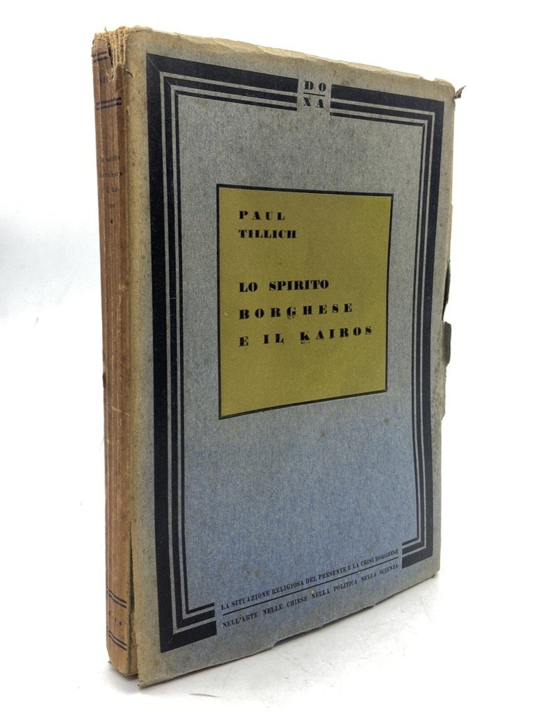 Brossura editoriale (strappo sulla cerniera anteriore), cm 20x14, pp 168. Prima edizione italiana di Die religiöse Lage der Gegenwart (1925), con traduzione e introduzione di Antonio Banfi (1886-1957); l’esistenzialismo cristiano di Tillich a confronto con i fermenti artistici, culturali, scientifici, politici e religiosi della Germania degli anni ’20; a breve il filosofo dovette lasciare il paese (1933), per le sue idee di socialismo cristiano. Sottotitolo, più vicino al titolo originale: La situazione religiosa del presente e la crisi borghese nell’arte, nelle chiese, nella politica e nella scienza.