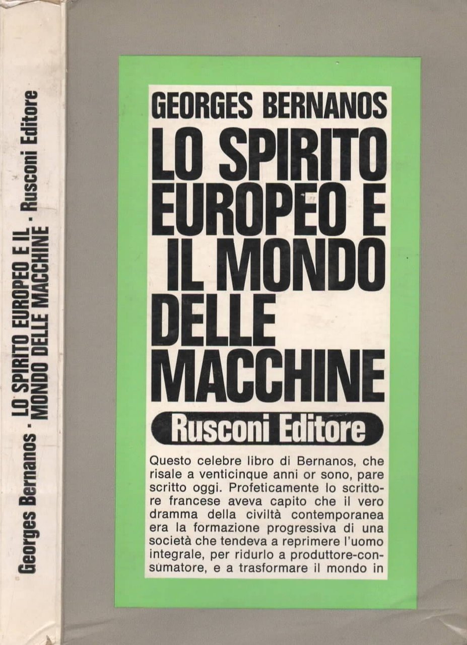 In queste pagine il grande pensatore francese critica, con il suo stile passionale e paradossale, i dogmi della società delle macchine: il progressismo, la fede patetica nella scienza e nella tecnica, il mito del Benessere che ha generato una società nevrotica e alienata. La soluzione non è la distruzione delle macchine ma la costruzione dell'uomo, che deve riappropriarsi della sua dignità, affermando la propria libertà, caratteristica appunto dello spirito europeo