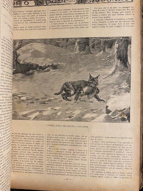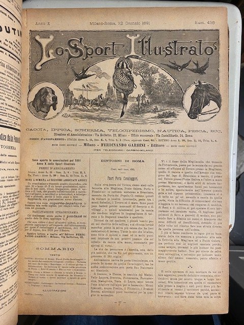 1vol- annata 1891 ( frontespizio ed indice non corrispondono all'annata in quanto fanno riferimento all'anno 1890)- leg. originale in mezza tela NON in buone condizioni, piatto anteriore parzialmente staccato e angoli consumati- mancanza angolo inf. posteriore- formato cm 28x37- manca fascicolo n. 476 ( presumibilmente della settimana del 15 ottobre 1891) lievi fioriture, piccoli marginali strappi, nel complesso discreta conservazione.