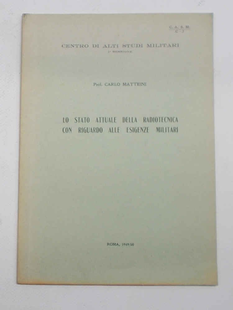 In 8° (cm. 24 x 17); pagg. 27; leggera carton. originale. VG. ** Cuclostilato da dattiloscritto in un numero limitato di esemplari. Centro Alti Studi Militari 1^ sessione. Pubblicazione C.A.S.M. C - 2.