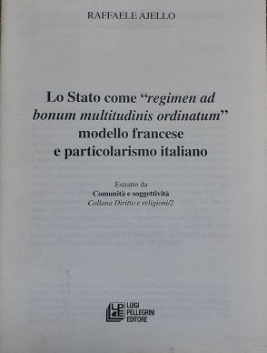 LO STATO COME REGIMEN AD BONUS MULTITUDINIS ORDINATUM MODELLO FRANCESE E PARTICOLARISMO ITALIANO
