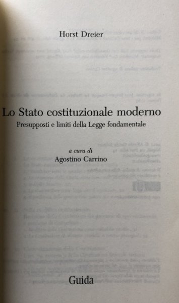 Titolo: Lo stato costituzionale moderno. Presupposti e limiti della legge fondamentale