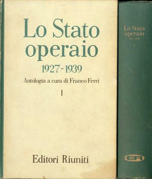 2 v. (XVI, 506; 661 p.) ; 22 x 15 cm. Pensiero e azione socialista. «Lo Stato Operaio» fu il periodico mensile del PCdI, diffuso clandestinamente anche in Italia, pubblicato a Parigi tra il 1927 e il 1929 per iniziativa di Palmiro Togliatti. Dopo l’occupazione nazista della Francia, la rivista venne pubblicata a New York (1940-43), sotto la direzione di G. Berti e A. Donini. Questa antologia offre una selezione di testi pubblicati dal periodico comunista che sicuramente rappresenta il principale organo teorico attraverso il quale venne orientato il PCdI negli anni dello stalinismo, la sua consultazione è fondamentale per capire la genesi e lo sviluppo del "partito nuovo" elaborato da Togliatti orfano di Antonio Gramsci in quegli anni recluso al confino e nelle carceri italiane. Legatura editoriale, coperta in cartone rigido telato e colorato, titoli impressi al piatto e al dorso. Qualche segno del tempo alle coperte e ai profili, tagli e pagine interne leggermente ingialliti, per il resto volumi integri. Codice libreria 7143.