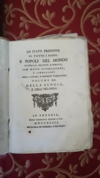 Lo stato presente di tutti i paesi e popoli del mondo natural, politico e morale con nuove osservazioni e correzioni degli antichi e moderni viaggiatori volume XIII Della Scozia e dell'Irlanda