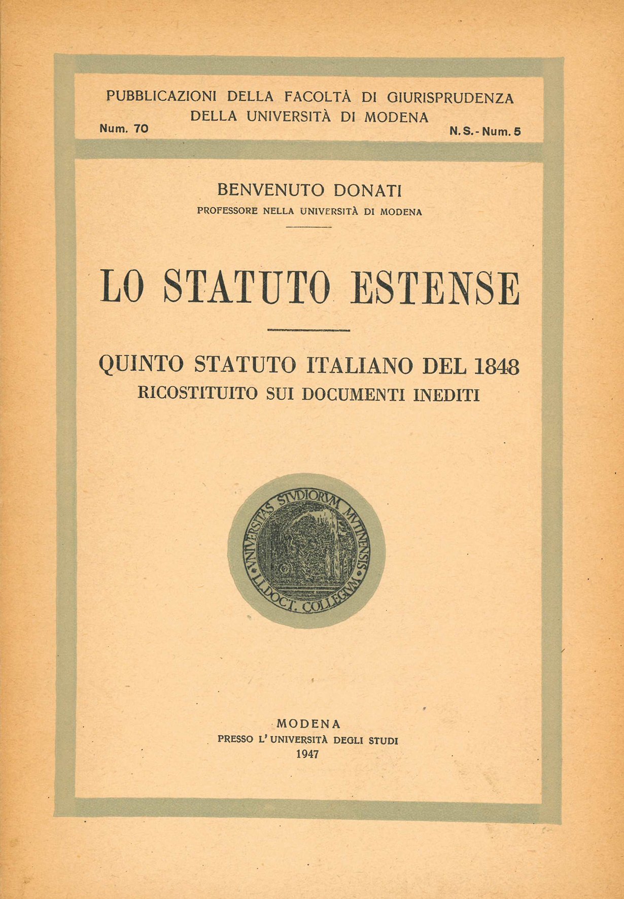 Lo Statuto Estense. Quinto statuto italiano del 1848 ricostituito sui documenti inediti