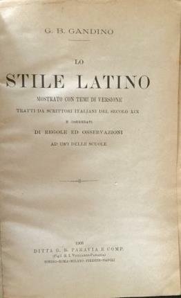 Lo stile latino. Mostrato con temi di versione. Tratti da scrittori italiani del secolo XIX e corredati di regole ed osservazioni ad uso delle scuole.