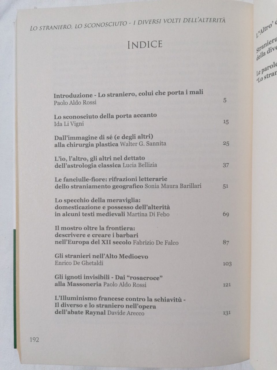 Lo Straniero Lo Sconosciuto I diversi volti dell'Alterità Libro Paolo Aldo Rossi