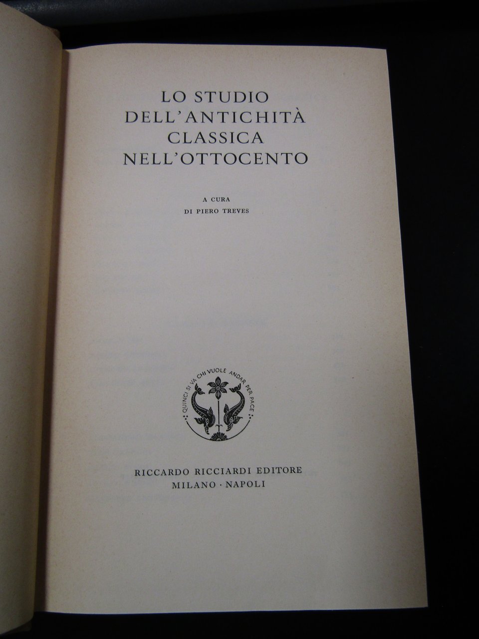 Treves Piero (a cura di) Lo studio dell'antichità classica nell'Ottocento. Ricciardi Editore 1962. Con cofanetto.. Milano - Napoli, Ricciardi Editore 1962 italiano, in ottavo pp. XLVI + 1293 38283