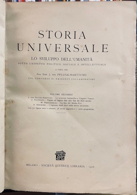 LO SVILUPPO DELL'UMANITA' SOTTO L'ASPETTO POLITICO, SOCIALE E INTELLETTUALE, STORIA UNIVERSALE. Vol. secondo.,