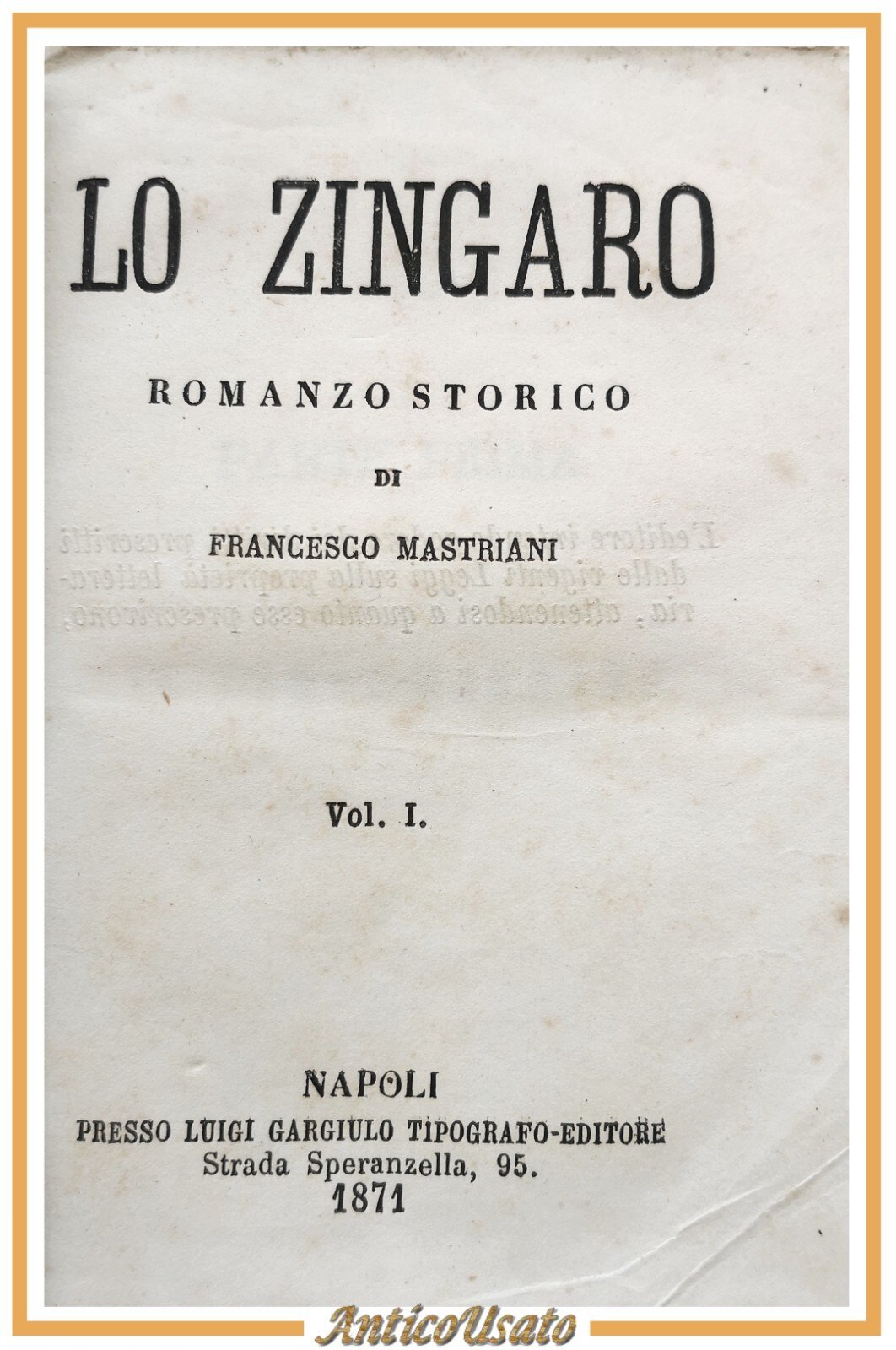 LO ZINGARO di Francesco Mastriani 2 volumi 1871 Luigi Gargiulo Libro antico