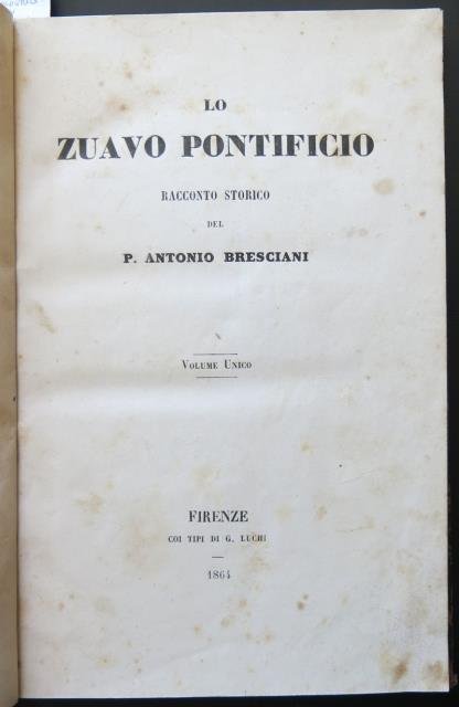 Lo zuavo pontificio. Racconto storico del P. Antonio Bresciani.