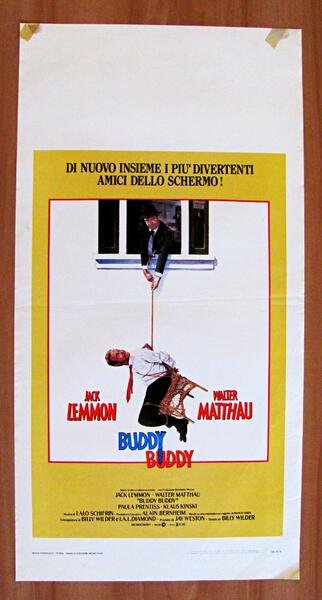Locandina Originale Buddy Buddy con Jack Lemmon e Walter Matthau. Prodotto da Jay Weston - Diretto da Billy Wilder. MGM - 1982. Tracce di scotch in alto agli angoli esterni. 33x70. Ottimo stato. , Molto buono (Very Good)